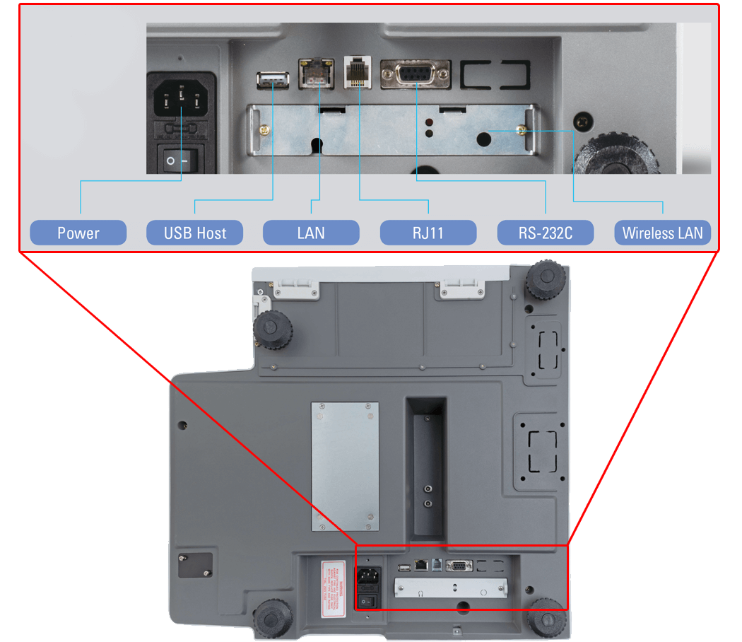 USB, LAN, RJ11, RS232C WIFI (opțional)