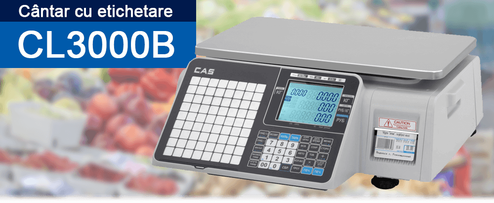 Cântarul cu etichetare CAS CL-3000B este o versiune nouă a cântarului CL3000 cu afișaj LCD monohrom pentru operator și client, cântarul dispune de sistemul de cântărire integrat cu imprimantă de etichete.