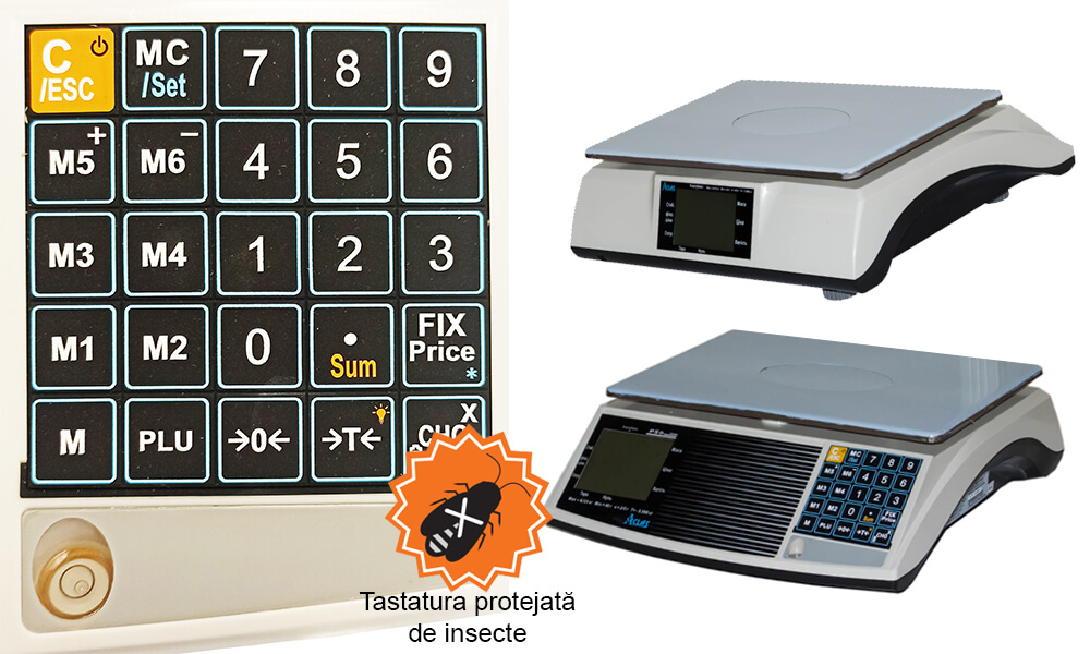 Acte si certificateCântarul este omologat , avizat metrologic (12 luni)Articole PLU8-DIRECT 70-INDIRECTDimensiuni (mm)350x360x125Greutate (kg)3Numarul de butoane25Temperatura de operare (°C)0+40